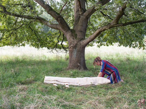 We zijn verheugd met de toevoeging van de prachtige waden van Valentine aan de collectie van Wikkelgoed. Onze collectie bestaat uit krachtige, esthetische en eenvoudige ontwerpen, van natuurlijke materialen, die uitnodigen tot een zachte en open benadering van de dood. Hier sluiten De Omhelzing en Rondomrond heel goed bij aan. En ze voegen ook iets toe: Valentines waden zijn eigenlijk kunstwerken te noemen, waarmee een nog persoonlijker afscheidsritueel mogelijk gemaakt wordt.